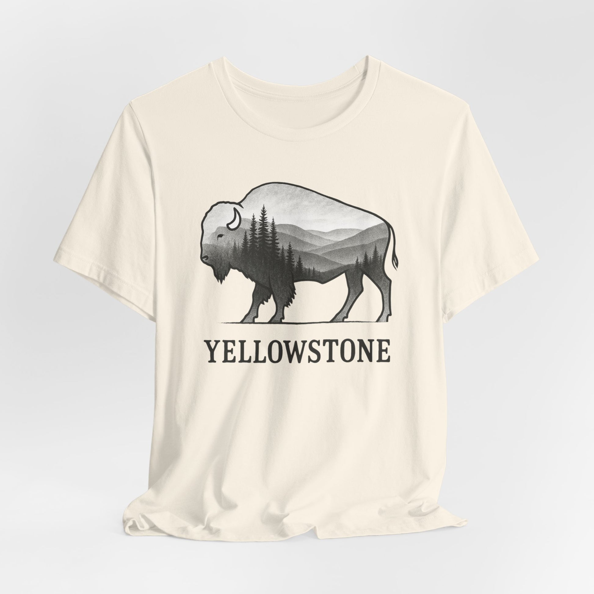 Yellowstone Bison Silhouette T-Shirt | Double Exposure Nature Tee